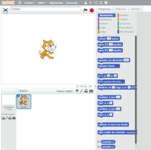 Su funcionamiento es muy sencillo: únicamente hay que seleccionar el personaje al que quieres dotar de animación y, en su zona de programación, arrastrar los bloques de instrucciones: una especie de piezas de colores que encajan unas con otras y dan vida a nuestro objeto permitiéndole desplazarse, desaparecer, preguntar, responder, cambiar de color, etc.